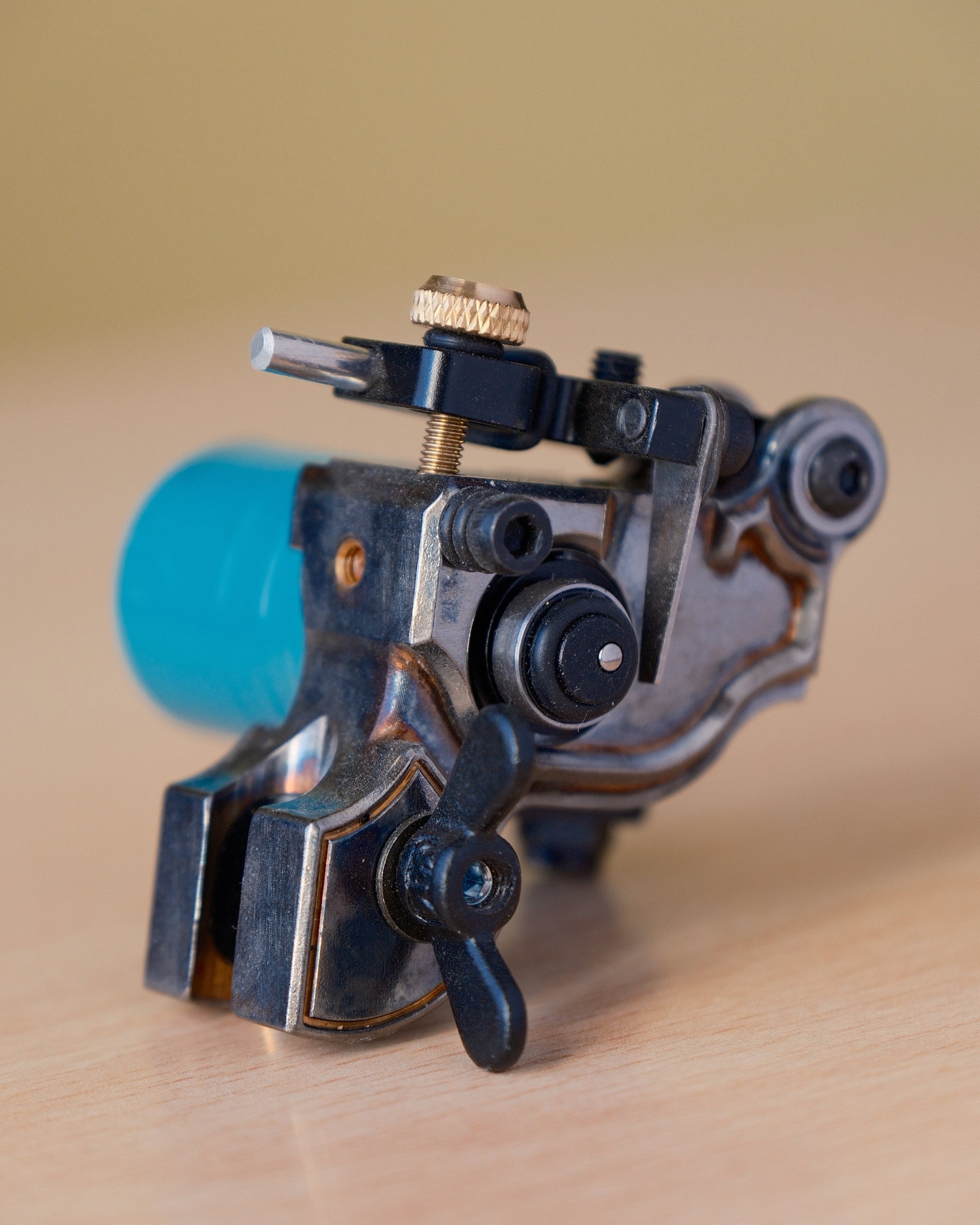 The adjustable stroke offers full control over the machine, allowing customization based on the artist's style and needs. The design draws inspiration from the vintage aesthetic of classic coil machines, combining tradition and innovation. -
