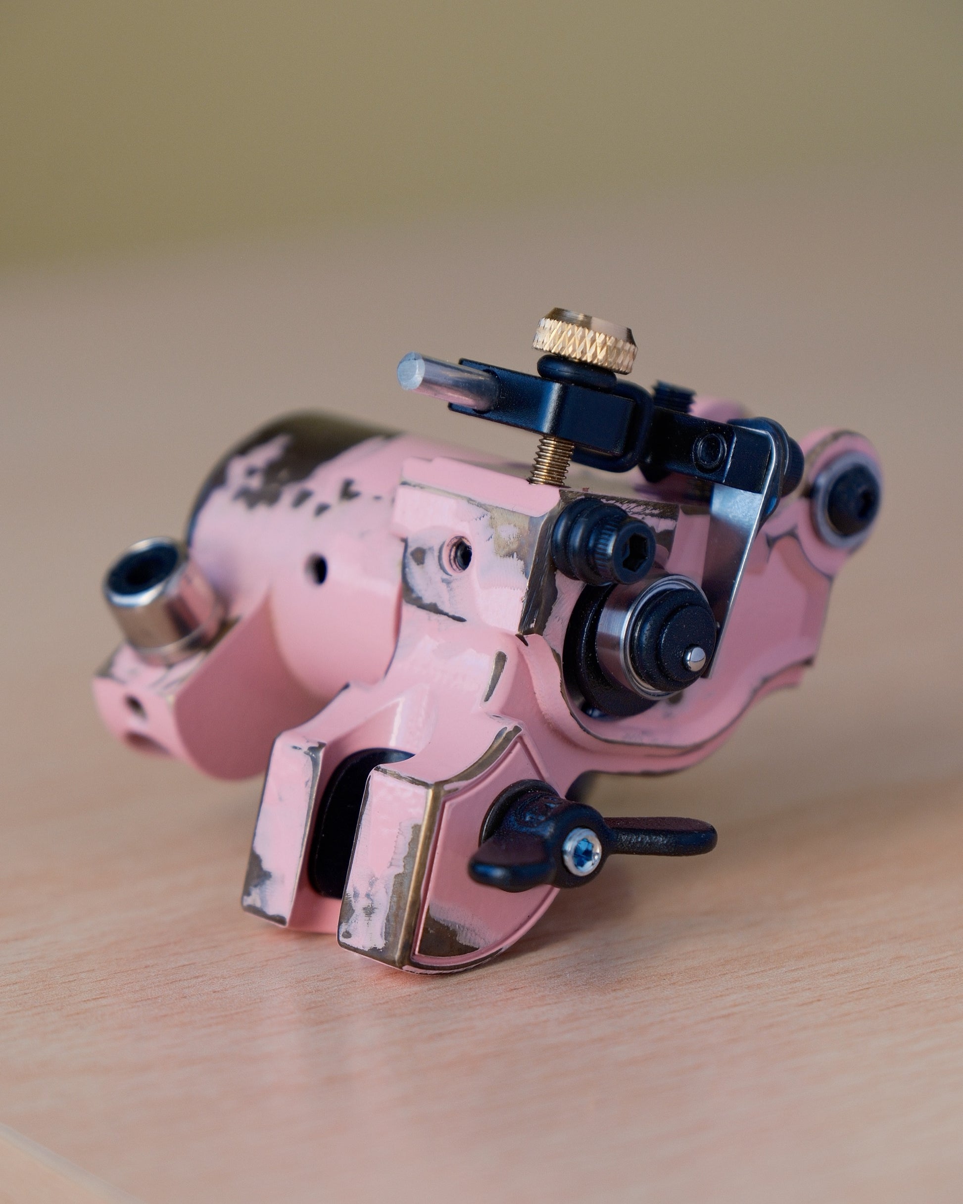 The adjustable stroke offers full control over the machine, allowing customization based on the artist's style and needs. The design draws inspiration from the vintage aesthetic of classic coil machines, combining tradition and innovation. -
