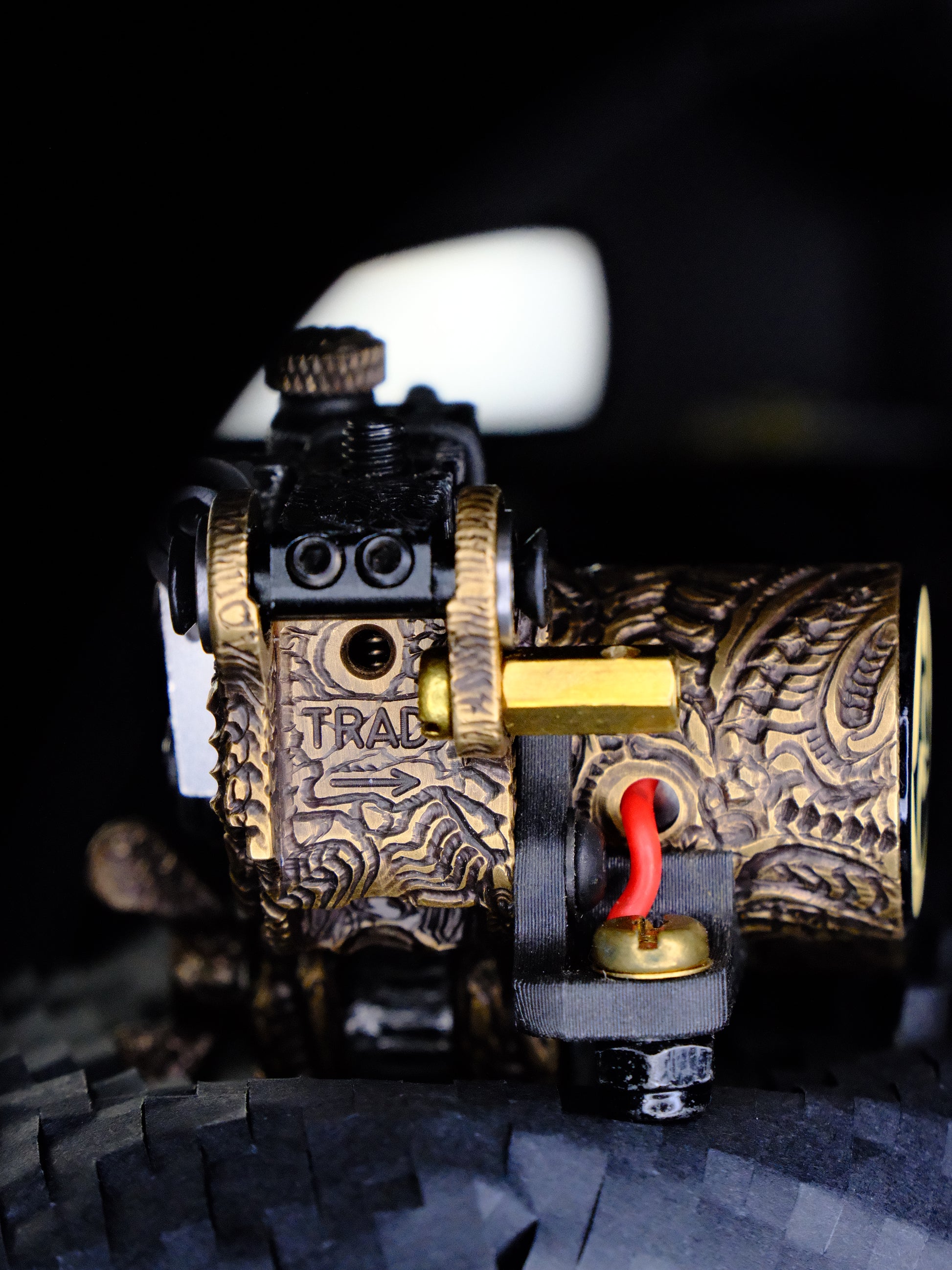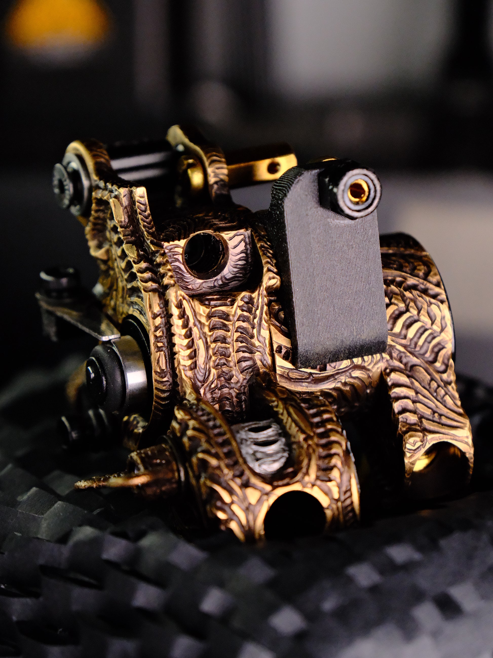 Questa edizione unica e irripetibile è stata interamente incisa a mano da Sanchez (STM) nello stile bio-organico che richiama le visioni biomeccaniche di H.R. Giger. Una vera opera d’arte funzionale, in cui tecnica e creatività si fondono in un pezzo destinato a diventare da collezione.